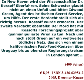 "Dass ausnahmsweise auch deutsche Thrillerautoren internationale Standards erreichen, belegt INFEKT." (DIE WOCHE) "Hochspannendes Krimifutter, das Leseratten mit atemloser Begeisterung verschlingen werden.... Der Genuss dieser gehaltvollen Lektüre hinterlässt einen bitteren Vorgeschmack auf die Zukunft." (Hamburger Abendblatt) "Hier hat ein deutscher Autor gelernt, wie ein Thriller funktioniert." (ekz) "Präzise Sprache, harte Schnitte, schnell, grell, reell - Horrorszenarien in Vollendung." (Fränkische Landeszeitung) "U.A.O. Heinlein lässt in seinem Roman "Infekt" kein Spannungselement aus." (BZ) "Wer High-Tech-Thriller liebt, der ist genau richtig." (X-mag) "Ein Buch, das ruhig in der Schublade hätte bleiben können" (Prof. Dr. G. Rademacher, GEW)